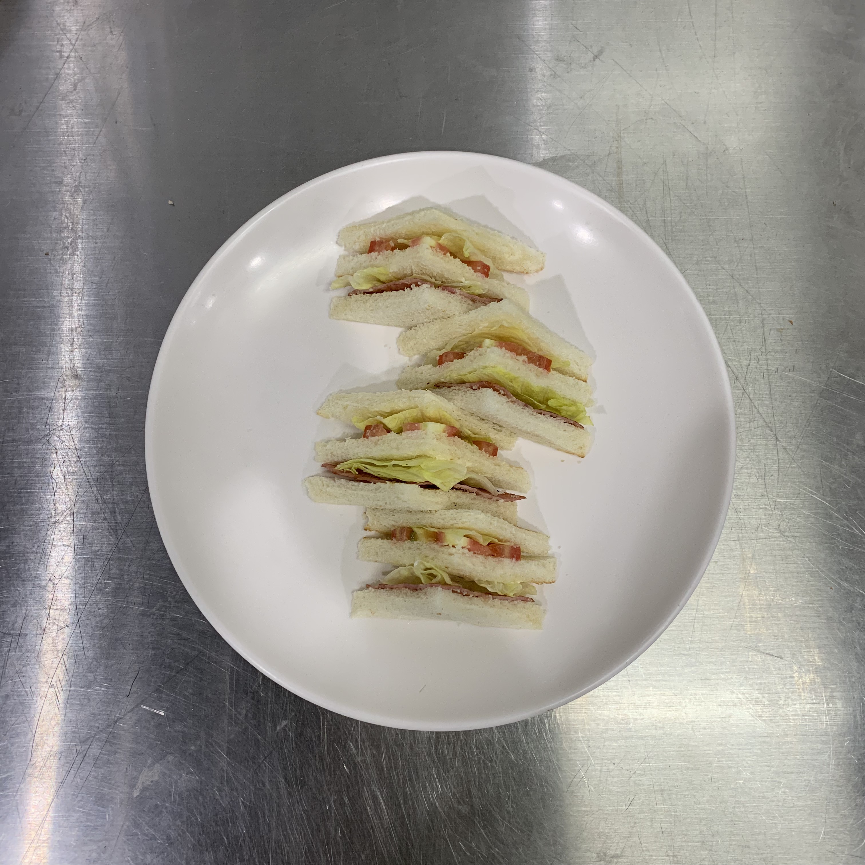 양쪽으로 마요네즈가 발라져있는 빵을 올려주고 그위에 양상추 + 베이컨 올려주고 빵을 덮어서 마무리